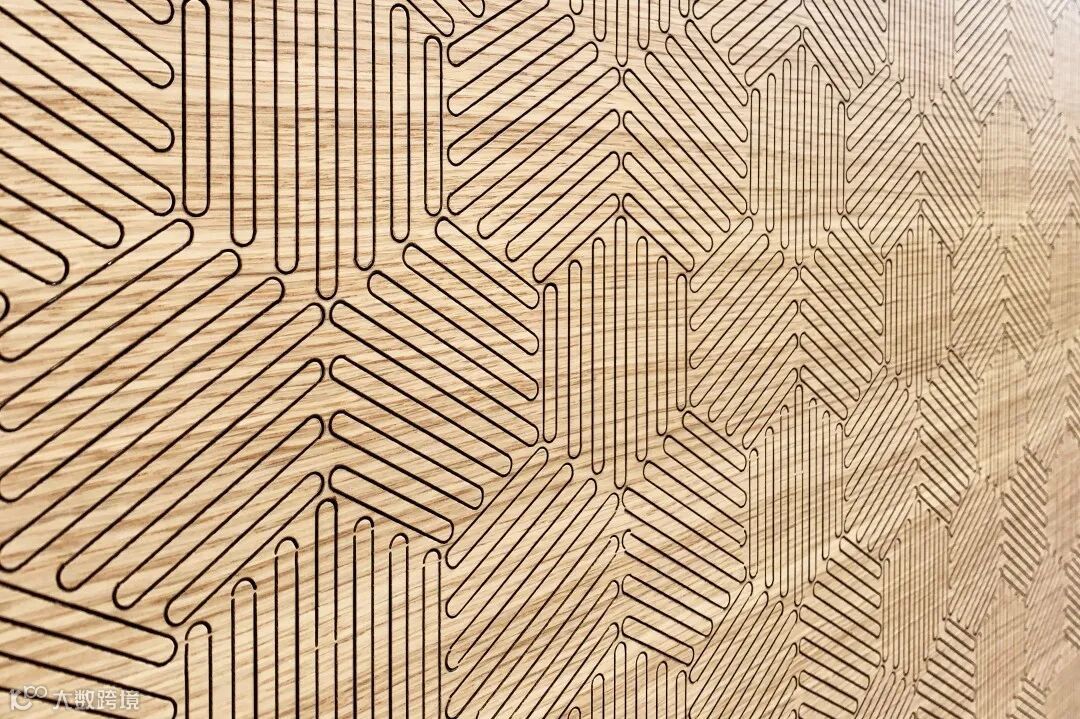 TOPAKUSTIK Line 通过图形装饰实现吸音功能,为吸音墙面和天花板饰面带来了全新的美感。人造板的背面穿孔至深约1.5mm图形装饰的下方,使得声音将穿透人造板,并被额外贴附在背面的矿棉板吸收。TOPAKUSTIK 可用于当前室内设计的贴面、涂漆或涂层模型中使用的任何表面处理。