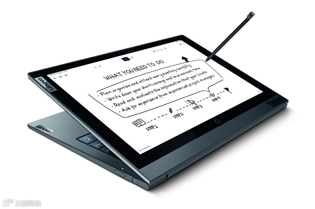 ThinkBook Plus Gen 2 机身轻盈,其第二个显示屏设计为用户友好型的电子墨水触控屏。比普通的液晶显示屏具有更长的电池寿命,对眼睛也很友好。用户可以轻松访问笔记本电脑的外部的电子墨水显示屏,就像使用简单的平板电脑设备一样,它还可以用手指或配套的触屏笔操作。