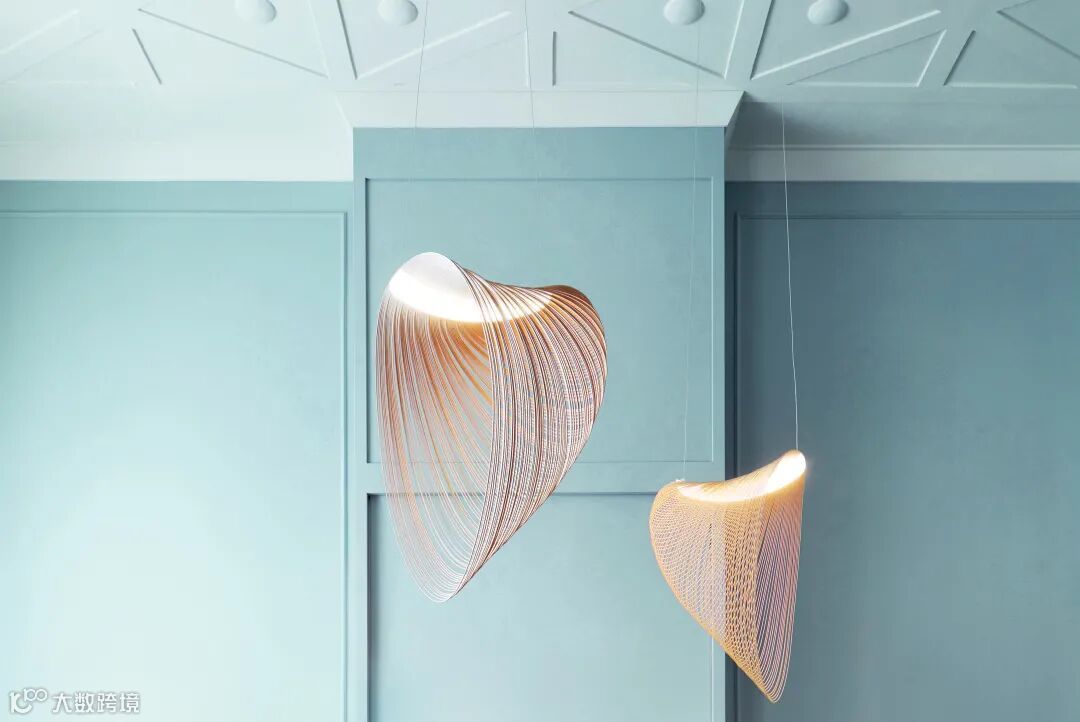 Illan 吊灯以极具美感的外观激发灵感,这得益于对技术和材料的创新使用。薄木板条的微妙振动与漫射光产生迷人的互动,使房间沐浴在宜人的氛围中。
