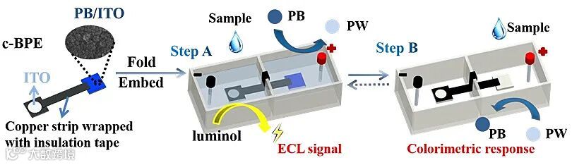 图1. 基于封闭式双极电极的电化学发光和比色双模式传感平台示意图。图片来源:Anal. Chem.