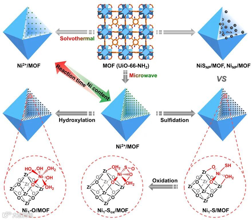 图1. Ni1-X/MOF的合成过程及其配位环境调控示意图。
