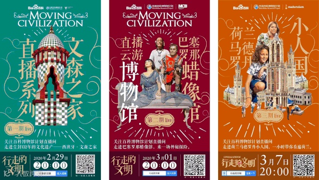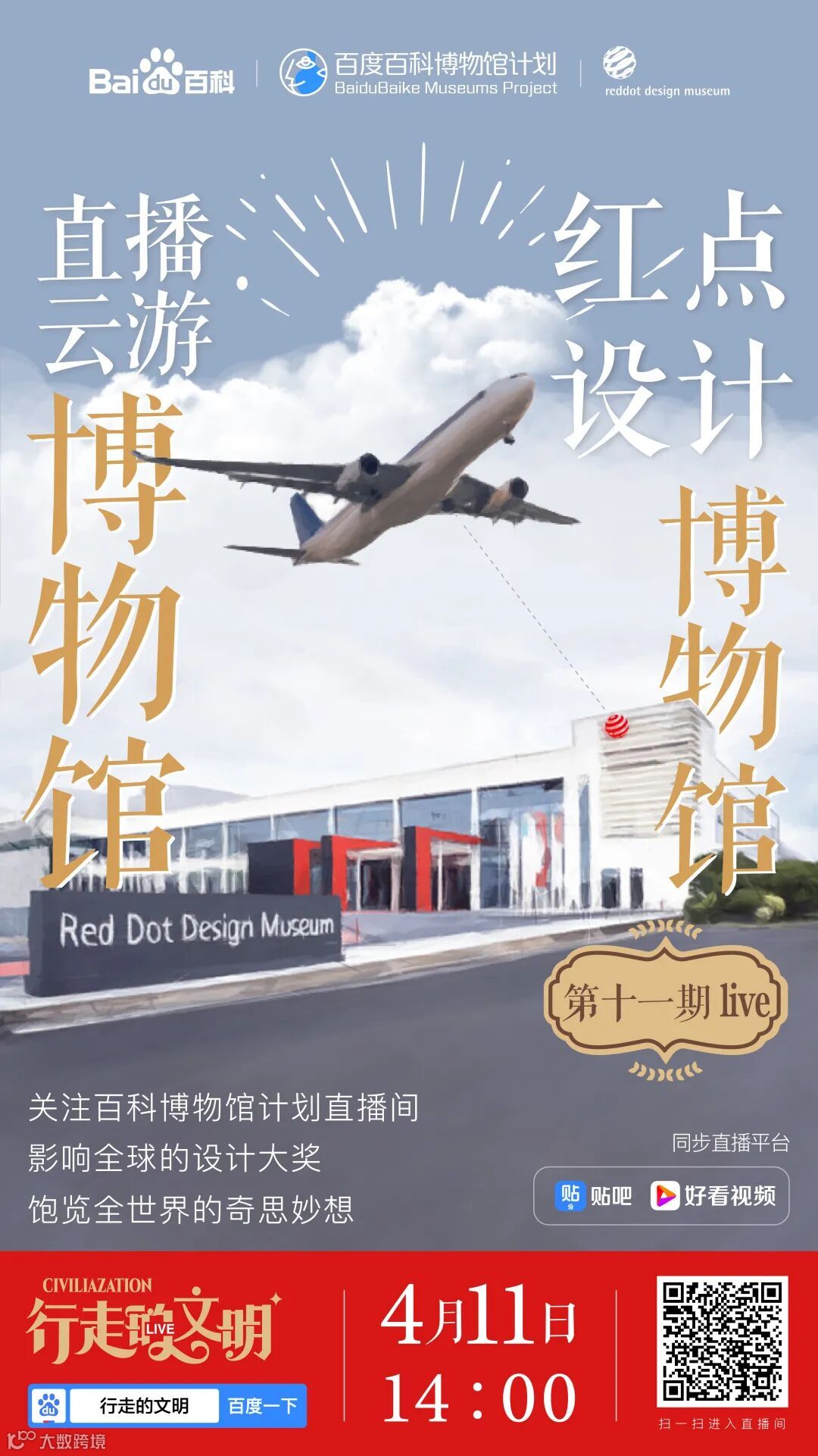 《行走的文明》是一档由百度百科博物馆计划全新打造的线上直播类科普系列节目。以权威专家带领观众体验博物馆、艺术展览等文化项目为主要内容,通过互动讲解的直播形式呈现。目前,「行走的文明」已经走过了西班牙、荷兰、日本、澳大利亚、瑞典几个国家包括「巴塞罗那蜡像馆」「埃舍尔博物馆」「冲绳县立博物馆」「新南威尔士州美术馆」「悉尼当代艺术博物馆」「悉尼歌剧院」「瓦萨滑雪博物馆」等世界知名建筑与博物馆。4月11日(本周六),《行走的文明》中国首站将于红点设计博物馆直播呈现。