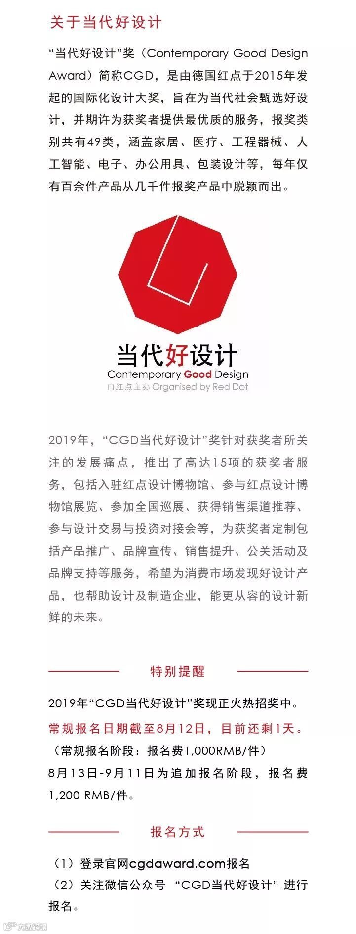 当代好设计奖是德国红点奖主办,与厦门文广传媒集团于2015年共同发起的国际设计大奖,旨在为当代社会甄选好设计,期许为获奖者提供最优质的获奖权益。