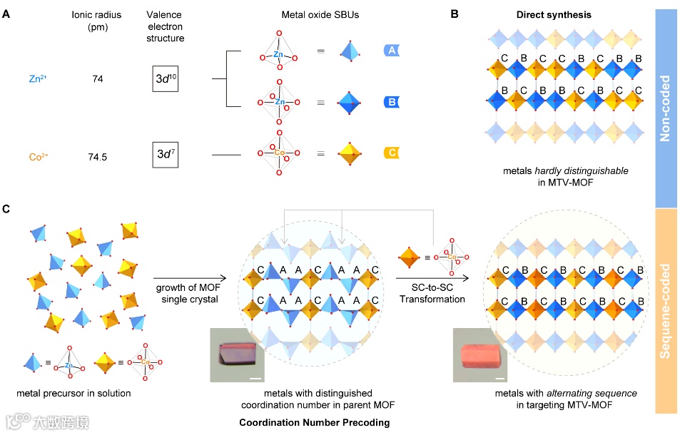 图1:采用“配位数预编码”策略构筑二维层板型金属序列编码的MTV-MOFs。