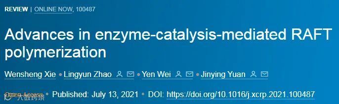 2021年7月,清华大学材料学院赵凌云副教授、化学系危岩教授和袁金颖教授合作在Cell Press细胞出版社期刊Cell Reports Physical Science 上发表综述文章,总结阐述了近年来酶催化介导的可逆加成-断裂链转移聚合(Enzyme-catalysis-mediated reversible addition-fragmentation chain transfer polymerization, Enz-RAFT)的研究进展,并对该领域的未来发展方向进行了展望。该文第一作者为谢文升。