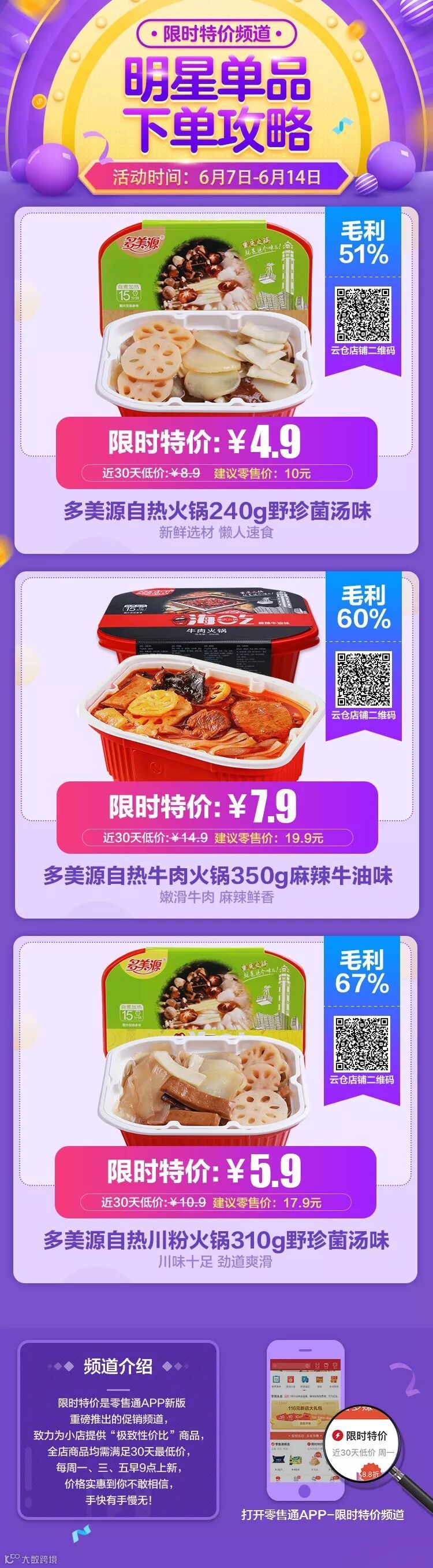 导读:好消息,好消息,6.7-6.7日限时活动即将上演,历史超低价,零售毛利最高可达67%,各位亲爱的店