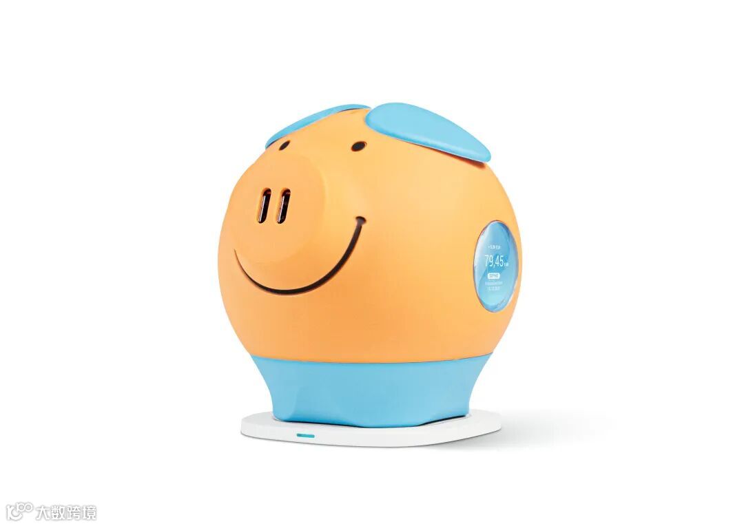 myPiggy是一款智能存钱罐,借助底座中集成的电子控制装置精确记录里面的金额。圆形LED彩色显示屏用作用户界面。与应用程序一起,它可以进行更深入地交互,例如设置储蓄目标、玩计数游戏或使用集成的时钟功能。同时也兼具了集成扬声器和USB移动电源的多功能智能属性。