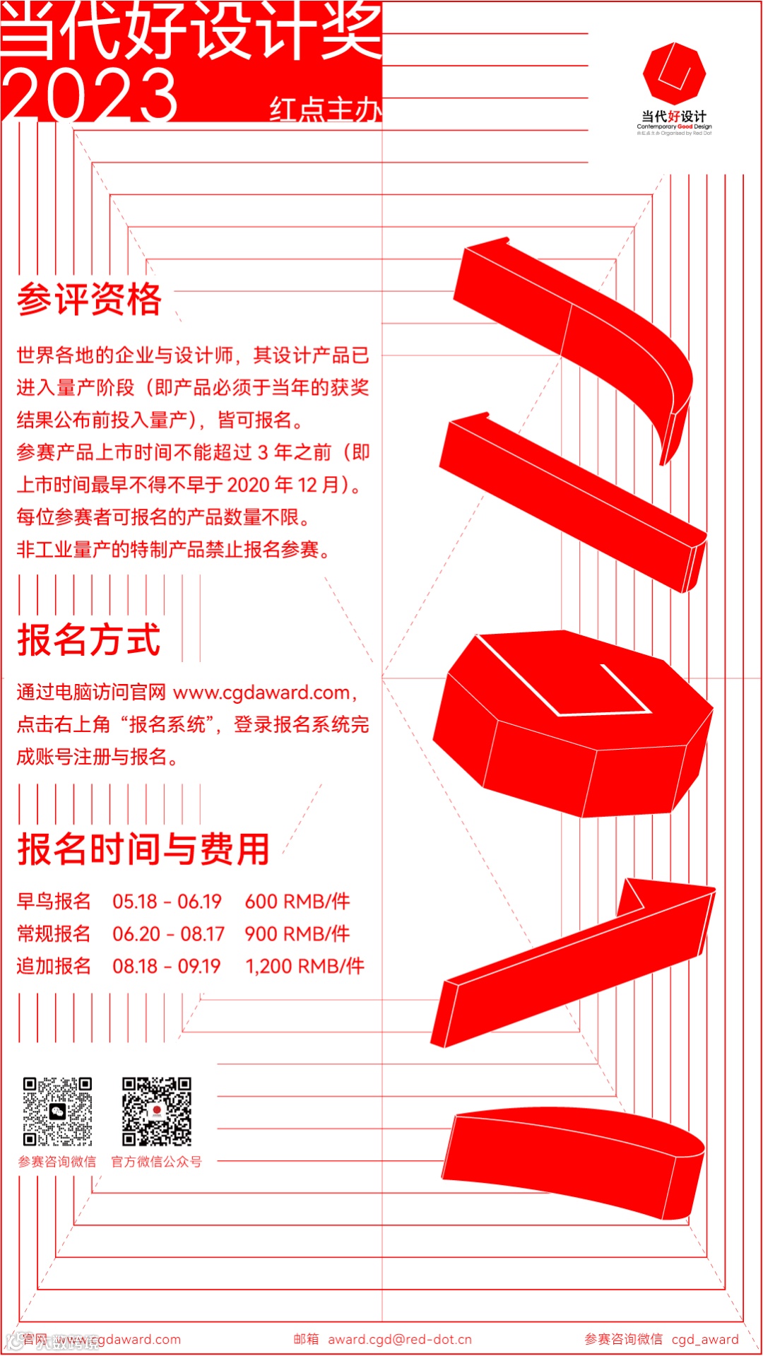 由德国红点奖主办的国际化设计大奖——2023当代好设计奖于5月18日启动全球征件,目前正在常规报名阶段中。