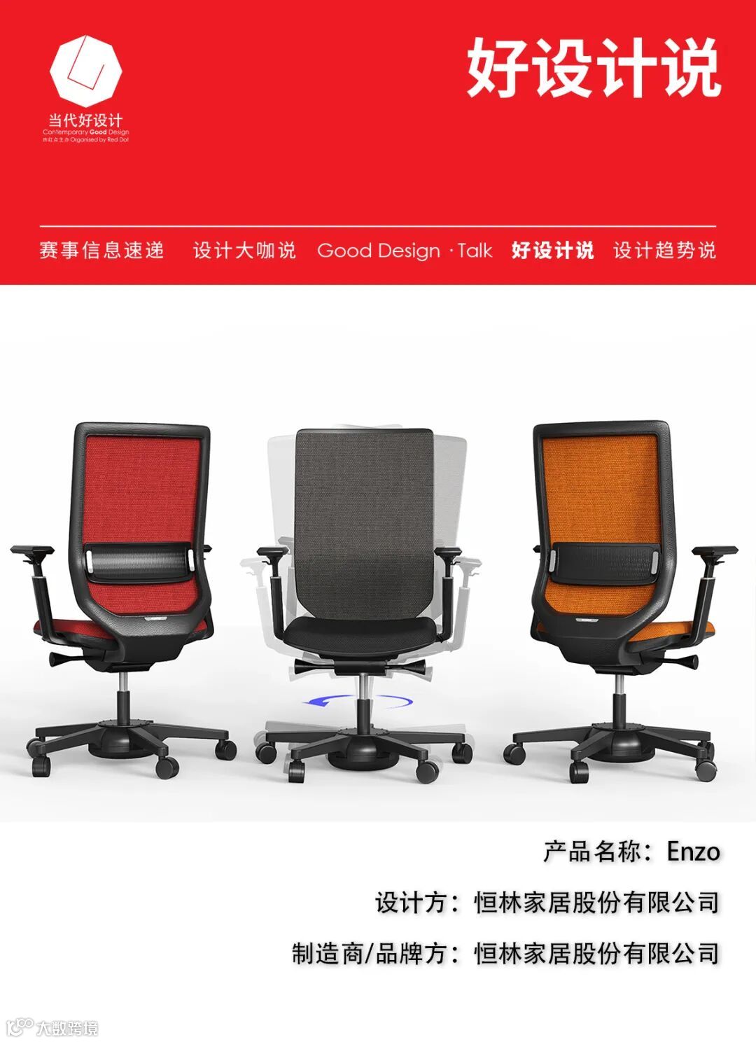 2020年,由恒林家居出品、设计师黄星主导设计的Enzo办公椅获得了当代好设计奖。