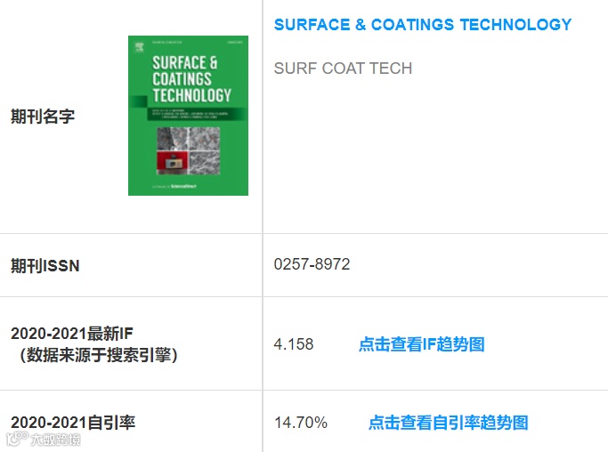 IF:4.158;国人占比:39.80%;自引率:14.72%;领域:应用物理 | 材料科学-涂层与膜。其能位列材料1区确实让很多人吃惊。即便是在涂层与膜这样的小领域也并不突出,在该领域21本期刊中排名第6。