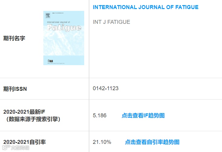 IF:5.186;国人占比:34.26%;自引率:21.06%;领域:工程-机械 | 材料综合。从名字就可以看出,International Journal of Fatigue主要研究材料疲劳性能,属于疲劳领域的顶级期刊,在工程-机械领域的133本期刊中排名第15。