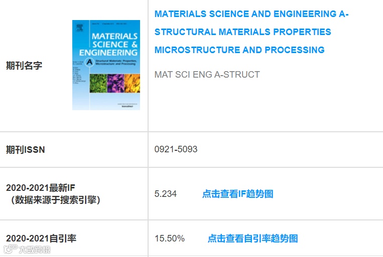 IF:5.234;国人占比:53.57%;自引率:15.46%;领域:纳米科技 | 材料综合 | 冶金工程。MSEA也属于金属材料和冶金领域的权威期刊,在80本冶金期刊中排名第8。