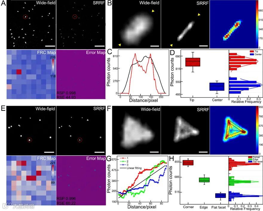 图2. 一维和二维纳米金材料ECL-SRRF成像与电催化活性空间分布分析
