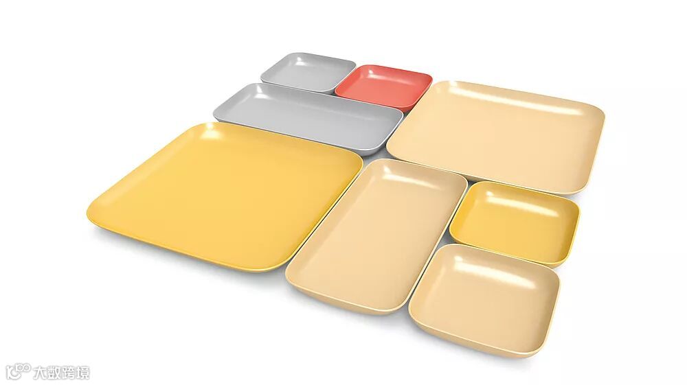 每次朋友家人聚餐,菜多了,碗筷就没有位置放了。洪小鹏关注到了这个细节并思考设计出了由尺寸不同的方形、矩形的盘子组成的餐具组合,命名为“马赛克”——源于易拼接的特性。这样的盘子不仅节省空间,还方便收纳。