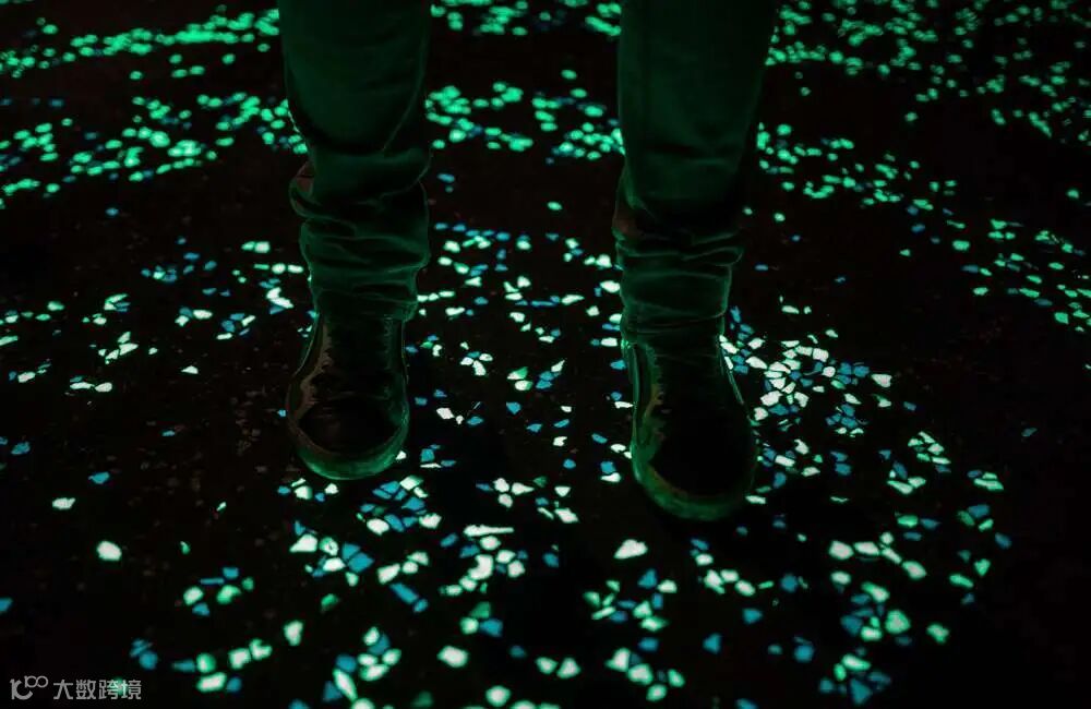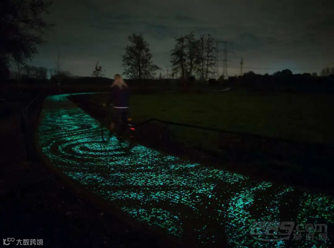 这条夜光自行车道长1公里,路面上铺着特殊的发光材料,白天能进行充电,而到了晚上就化作了星光之路。