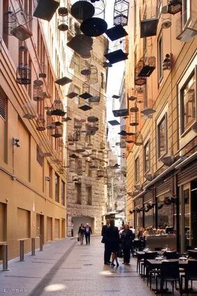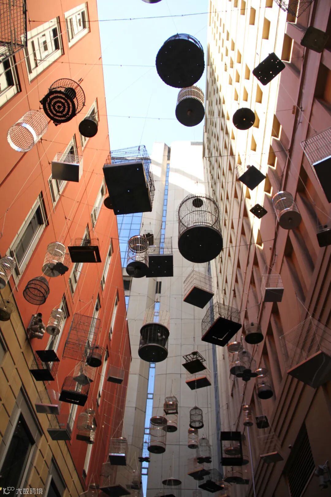 120个鸟笼子悬挂在空中的壮观场面出现在Angel Place小巷中,艺术家们以此来唤起人们对于曾今栖息于此地的鸟类的回忆,呼吁人们重视自然保护。