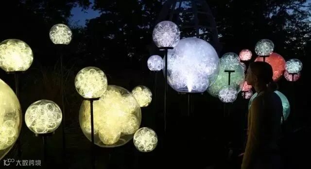英国艺术家Bruce Munro在巴斯的Holburne博物馆展出了『Field of light星光原野』装置作品,这个场地环绕着整座博物馆建筑,艺术家用无数五彩缤纷的灯光装点了整个场地,照亮了黑暗的夜空。
