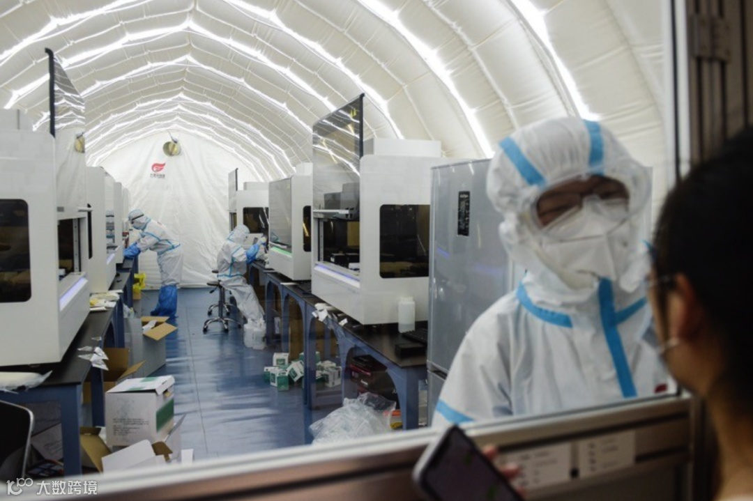 最具挑战的是6月北京的“火眼”实验室(气膜版)的设计和搭建。当时需求的通量极大,并且从接到需求到项目落地只给了我们两周时间,项目现场情况千变万化,很多设计都是临时熬夜调整更改。但也正因为最初采用了模块化设计,“火眼”实验室可根据需求灵活调整配置检测通量,仅6天就在北京大兴区建设完成了10万高通量核酸检测实验室。