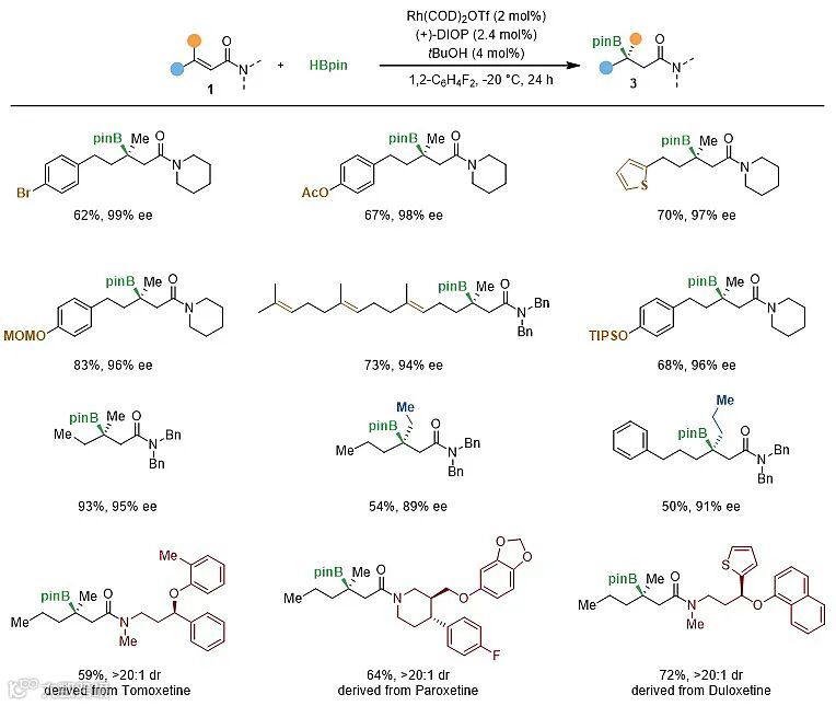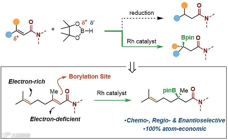图1. 多取代不饱和羰基化合物β位硼化的选择性。图片来源:Nat. Commun.