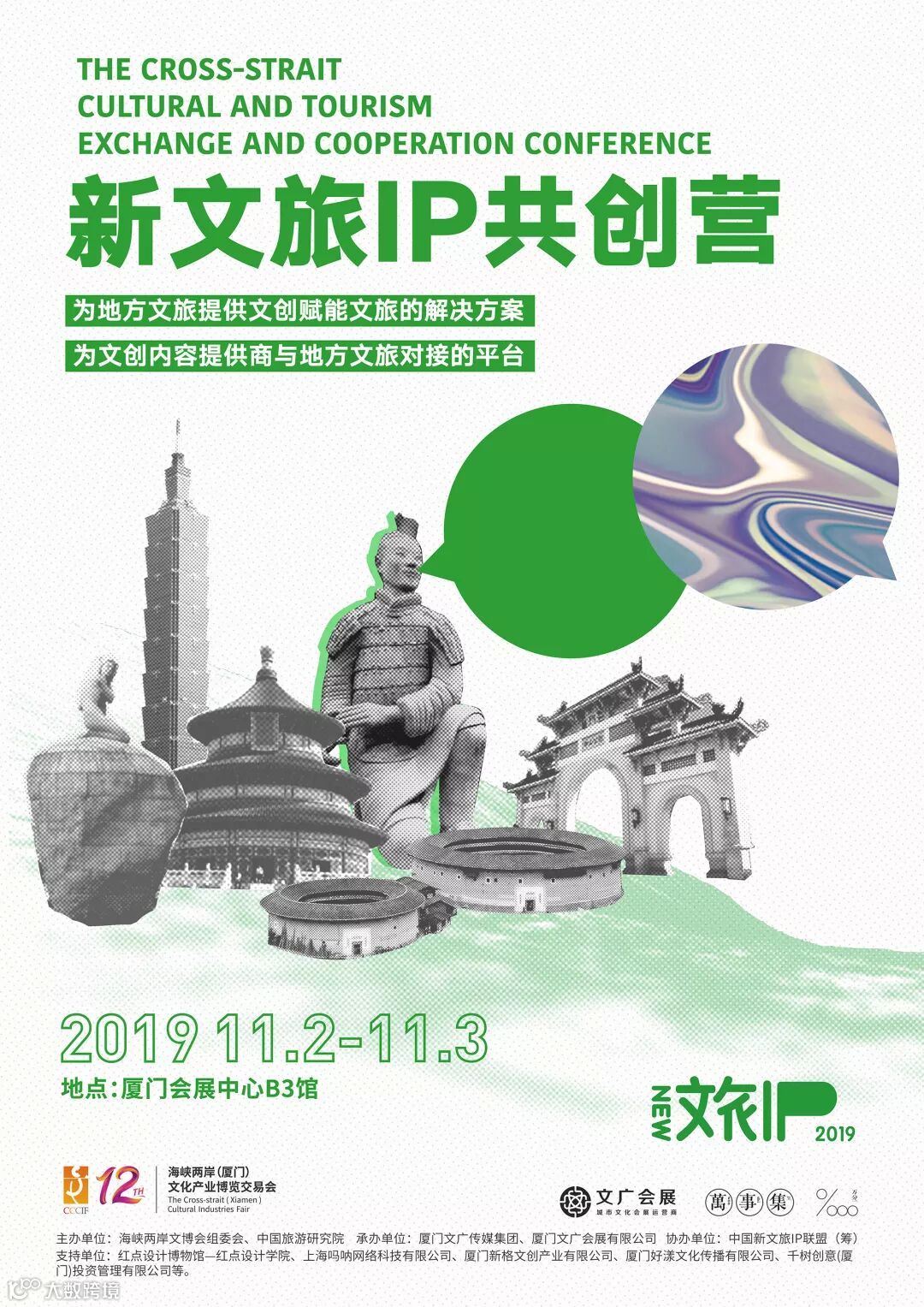 厦门文广传媒集团邀请多家行业头部机构共同发起成立新文旅IP联盟,借力厦门文广会展有限公司运营的海峡两岸(厦门)文化产业博览会,面向全国文创内容提供商(平面设计、产品设计、雕塑艺术、新媒体艺术、数字内容创意等相关个人及企业),搭建以文旅为主题的文创行业交流与合作平台。