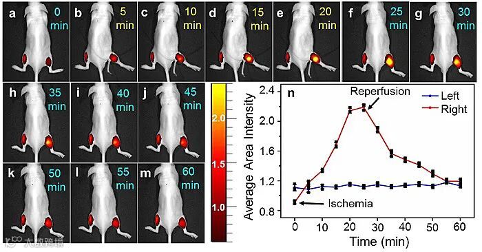 图4. 小鼠后腿缺血—再灌注过程中HDSF对缺氧—复氧过程的成像。