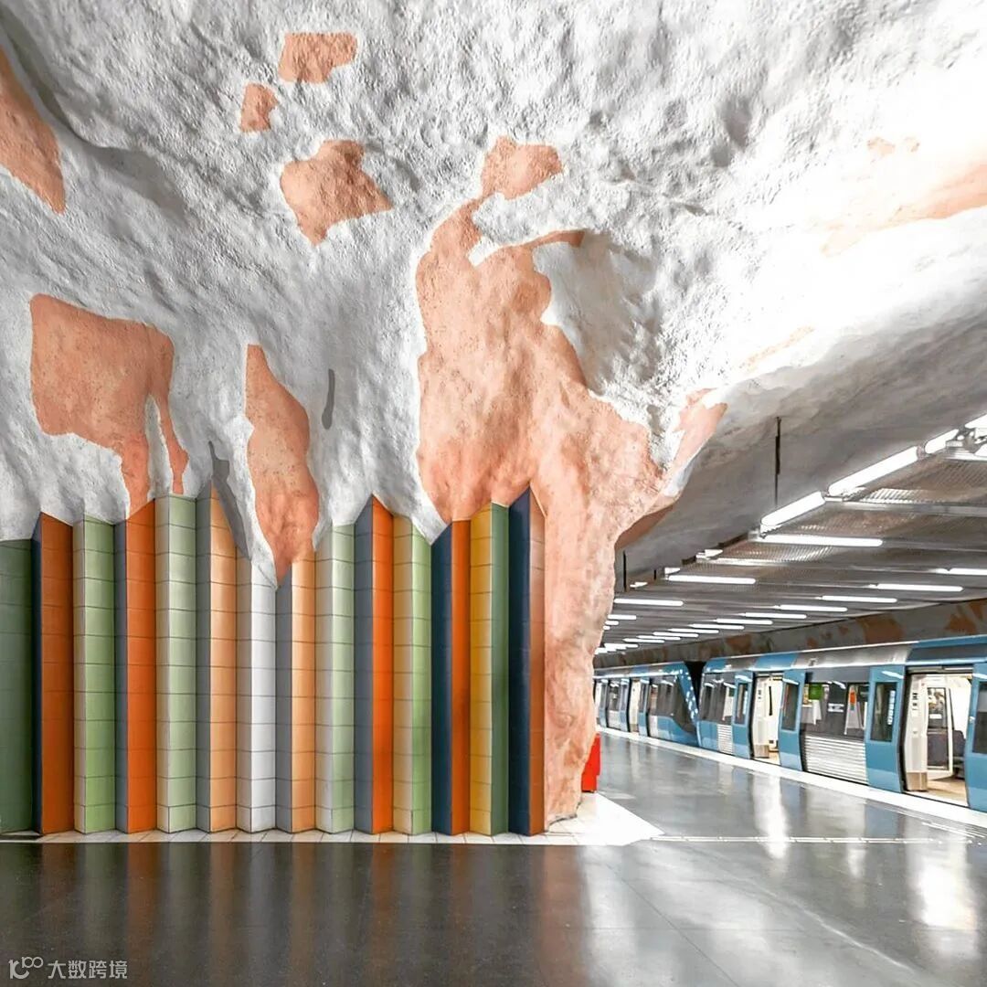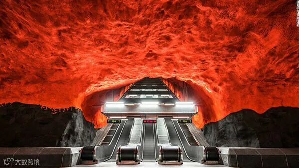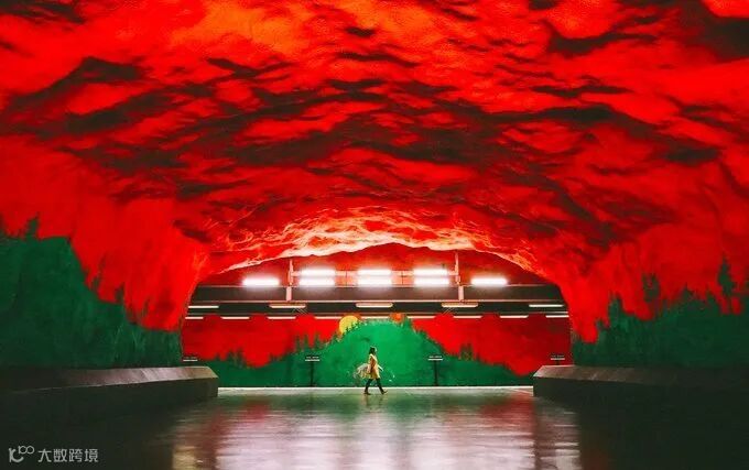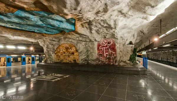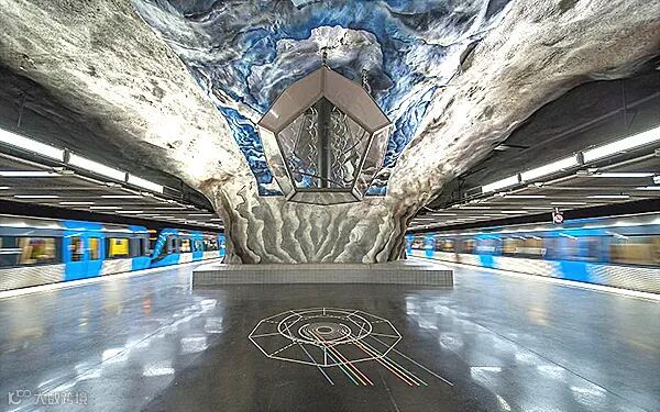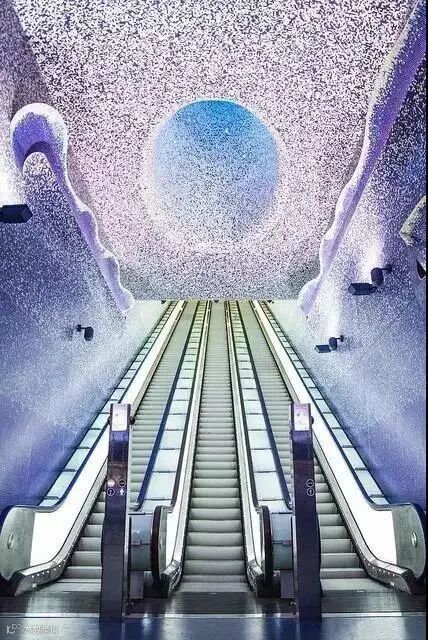 斯德哥尔摩地铁站被誉为世界上最长的艺术长廊,在110公里的红、绿、蓝三条地铁线沿线一共分布着100个地铁站,其中超过九成都展示着丰富多彩的公共艺术作品。