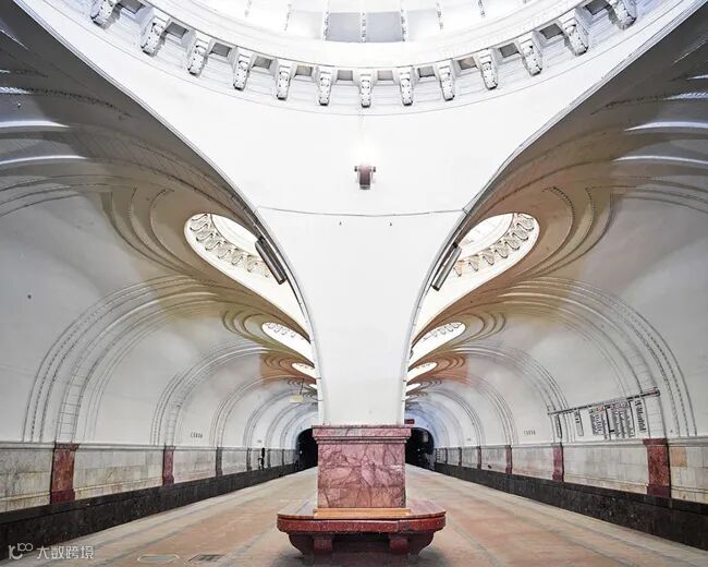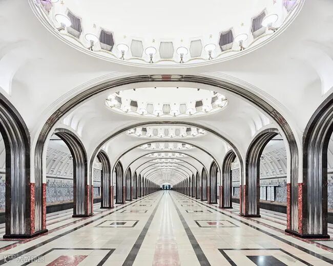 大理石墙壁、华美的吊灯、反光的地面共同打造出奢华的地下城堡,当时的苏联也通过这些装饰来向民众和世界显示国力的强盛。