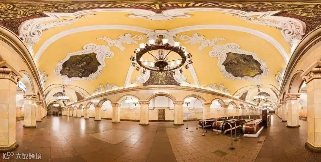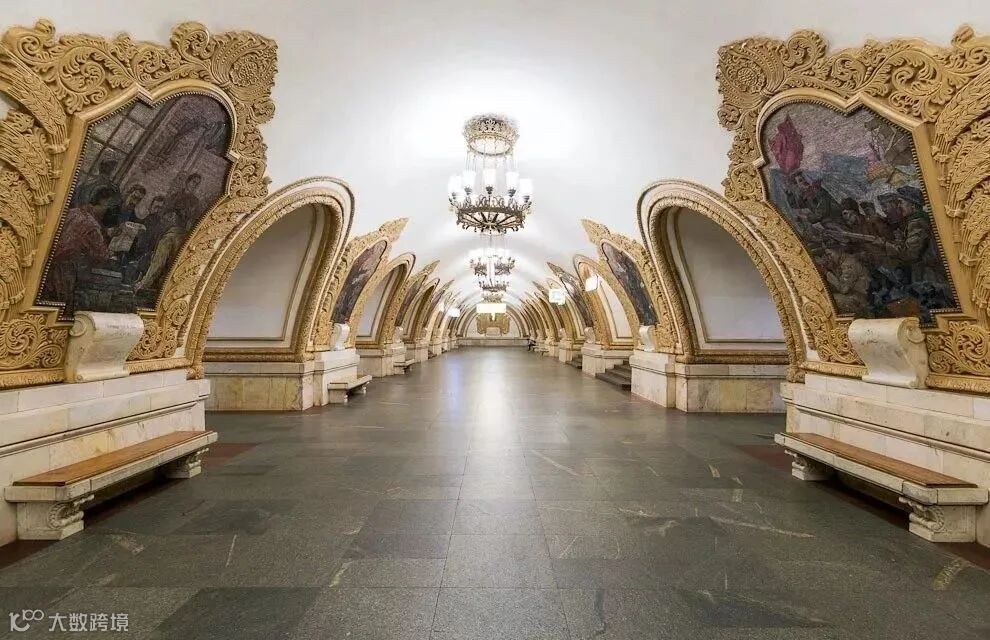 踏出车厢门的一瞬间仿佛进入沙皇时期的宫殿,莫斯科地铁在1935年开幕时被视为社会主义祖国宣传的一部分,前苏联领导者下令建筑师们,要在地铁站中体现「svet」(光)跟「sveltloe budushchee」(璀璨的未来)等概念。
