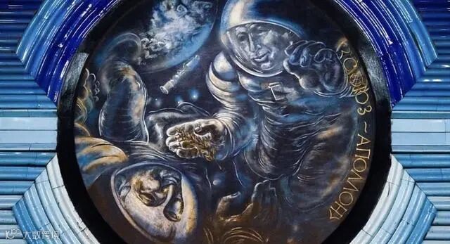 深蓝色的墙壁上都是前苏联宇航员的雕像
