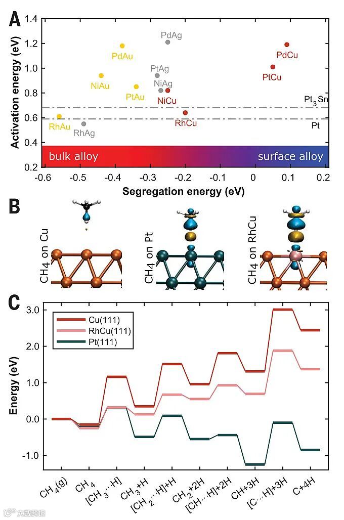 图2. RhCu(111) SAA催化剂模型研究。图片来源:Science