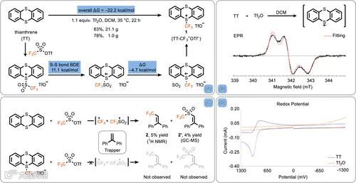 5. Jia, H., Häring, A. P., Berger, F., Zhang, L. & Ritter, T. Trifluoromethyl Thianthrenium Triflate: A Readily Available Trifluoromethylating Reagent with Formal CF3+, CF3·, and CF3– Reactivity. J. Am. Chem. Soc., 2021, 143, 7623-7628; DOI: 10.1021/jacs.1c02606