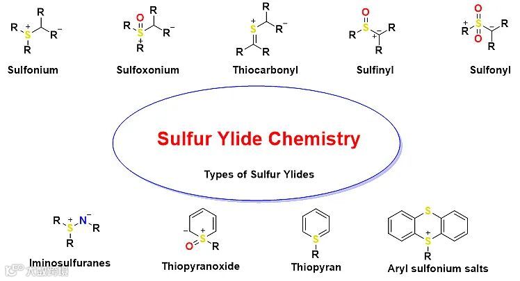 一切要从硫叶立德化学(Sulfur Ylide Chemistry)开始说起。上个世纪30年代,Ingold制备了第一例硫叶立德试剂;此后,William Johnson于1961年利用硫叶立德试剂首次实现了9-二甲硫基芴与对硝基苯甲醛之间的反应,合成了环氧亚苄基芴;随后,Corey和Chaykovsky发现了二甲基亚甲基硫叶立德(CH3)2SCH2和另一种亚砜叶立德试剂——二甲基氧代亚甲基硫叶立德(CH3)2SOCH2(Dimethyloxosulfonium methylide),即Corey-Chaykovsky试剂,该试剂可以构建环氧化物、氮杂环丙烷以及环丙烷这类含有三元环结构的有机化合物。迄今为止,科学家发展了各种不同类型的硫叶立德试剂(图1),并将其广泛应用于有机合成化学中,如1,3-偶极环加成、1,5-电环化反应、Johnson-Corey-Chaykovsky反应、X-H键插入反应、环加成反应、重排反应等。