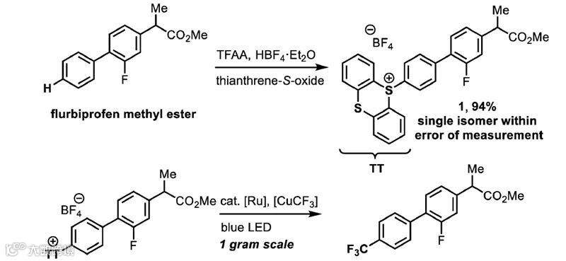 图6. 光介导芳基噻蒽鎓盐选择性构建碳-三氟甲基。图片来源:Angew. Chem. Int. Ed. [4]