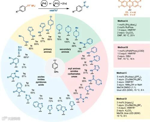 图11. 芳基噻蒽鎓盐交叉偶联构建碳-氮键。图片来源:J. Am. Chem. Soc. [7]