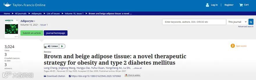 Adipocyte 为开放获取期刊,期刊论文向所有读者开放。