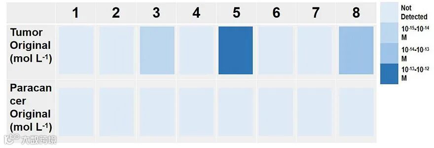 图2. 生物传感器在肿瘤组织和癌旁组织中对目标DNA的检测结果。