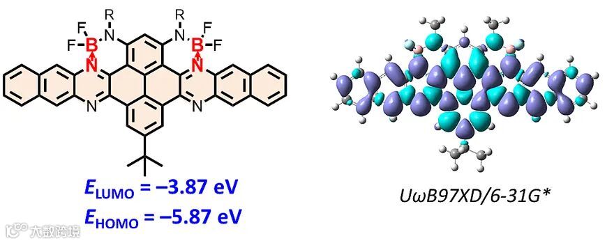 图1. 硼氮配位键n-型稠环芳烃的化学结构以及计算的电子自旋密度分布