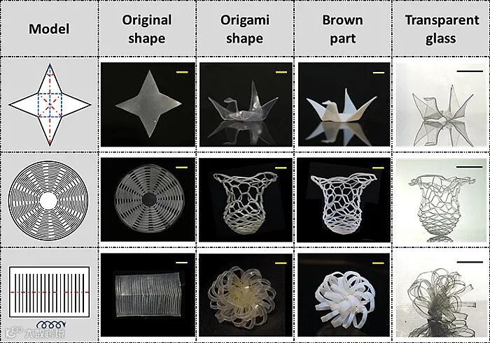 图1. 三维透明折纸玻璃的制备过程及机理。图片来源:Nat. Commun.