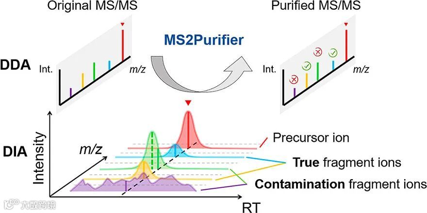 图3. MS2Purifier借用DIA数据对DDA数据中二级质谱谱图进行纯化。