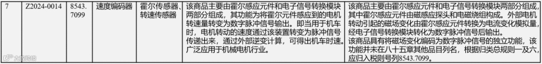 —— 上述产品仅为霍尔元件+信号转换模块组成, 需要外部逆变计算后才能得出机车时速,不构成测量仪器整机特征,所以按独立功能归入8543