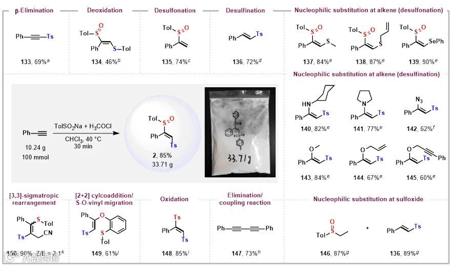 首次清晰阐明了亚砜基砜化合物的结构特征,建立了普适性的不饱和烃的亚砜砜化反应。