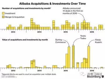 据彭博社报道,阿里巴巴已经成长为中国电子商务的霸主。这一领先地位得力于该公司提早开发自己的技术平台,并发展自己的物流和支付功能,使在线购物愈发方便。该公司正在利用收购进一步建立其企业生态系统,抢购视频和新闻内容提供商,离线服务以及海外公司。随着2016年接近尾声,以下是阿里巴巴最重要的交易和部分细节: