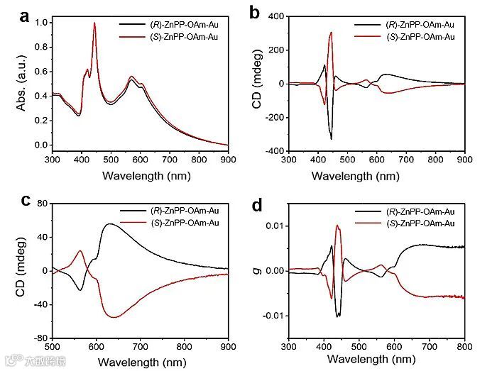 图3. (R)/(S)-ZnPP-OAm-Au组装体的光谱图。图片来源: