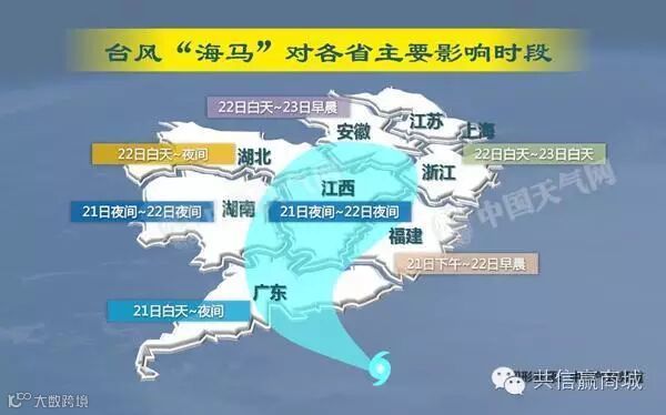登陆后,“海马”向偏北转东北方向移动,强度快速减弱,继续影响湘鄂及华东大部,22日进入江西境内,江西、江苏、上海、安徽、湖南、湖北、浙江将陆续遭遇暴雨影响。其中,台风与南下冷空气相结合,江西北部有暴雨。