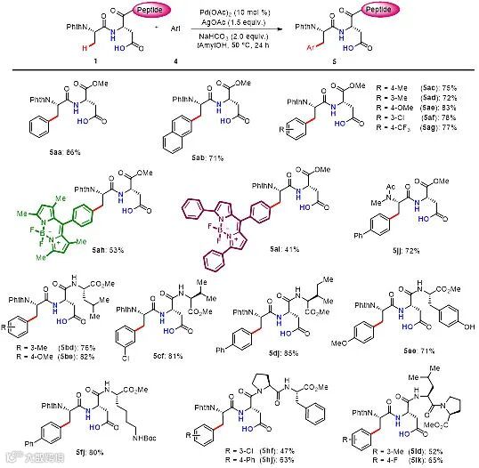 )–H芳基化修饰获得含L-Phe衍生物的多肽