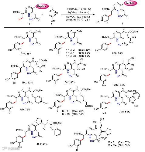 )–H芳基化并获得含L-Phe衍生物的多肽