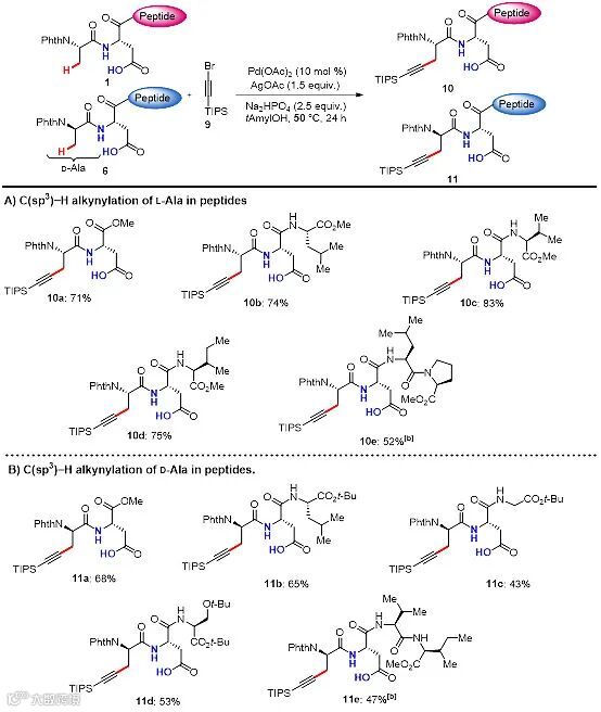 )−H活化反应的研究。在温和的条件下(50 °C),该研究实现了多肽序列中L-和D-丙氨酸的C(