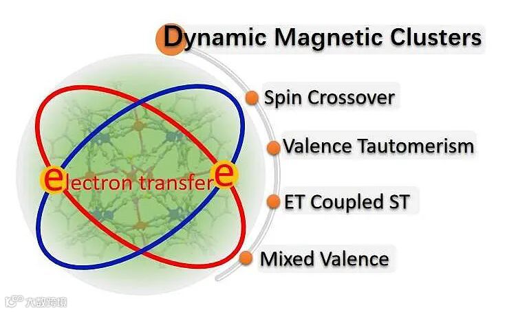 在原子水平上理解双稳态磁电行为的本质,对于指导合成性能优越的分子磁体并最终实现分子磁体的实际应用至关重要。因此,该综述论文首先介绍了具有不同时间尺度(从微秒到飞秒级)的表征分析技术;随后,分析了多种磁开关机制的配位团簇,包括自旋交叉(高低自旋双稳态)和混合价(电荷双稳态)团簇;最后,在深入阐明自旋态和混合价化学基础上,揭示磁性团簇可以通过其可切换的动态电子构型(包括自旋转变、电子转移和价态涨落等机制),在分子/团簇水平表现出磁开关和信息储存性能。