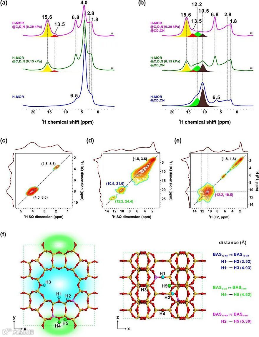 图1. 氘代乙腈探针辅助的1H NMR方法用于表征丝光沸石不同孔道中的酸强度和酸分布信息
