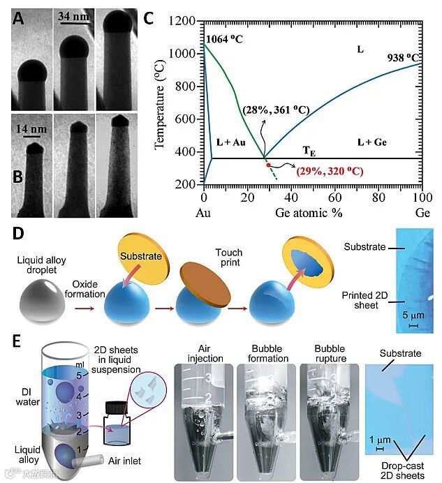 图3. 基于共熔金属制备金属纳米线和单、多层二维金属氧化物的方法。